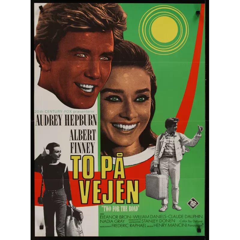 Rare vintage Danish poster with unique artwork for Audrey Hepburn's 1967 romantic comedy