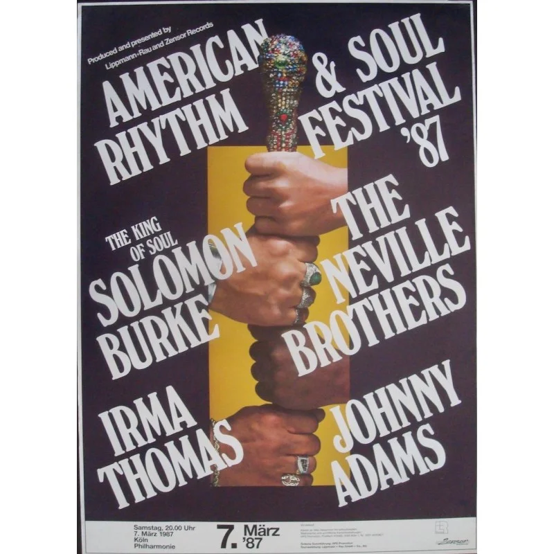 Rare vintage German poster created for the 1987 Rhthm And Soul festival concerts by Gunther Kieser