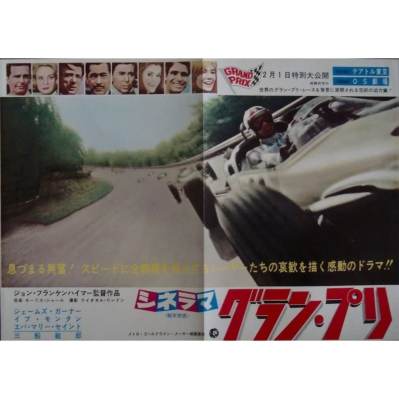 Double sided Japanese Ad poster for James Garner's 1966 F1 racing classic. Verso has a personality poster of Alain Delon