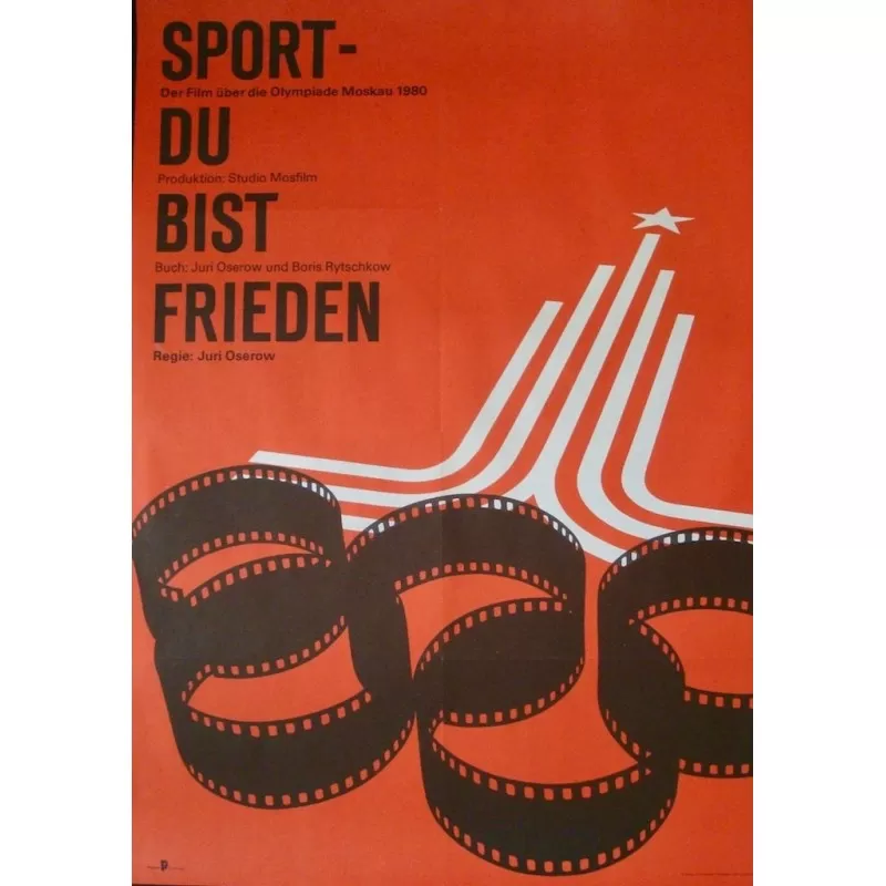 Beautiful design for the East German release of the 1981 Russian documentary filmed during the 1980 Moscow Olympics
