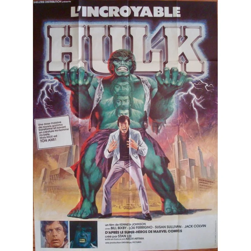 Rare large French poster for the theatrical release of two episodes of the cult Marvel Comics TV series